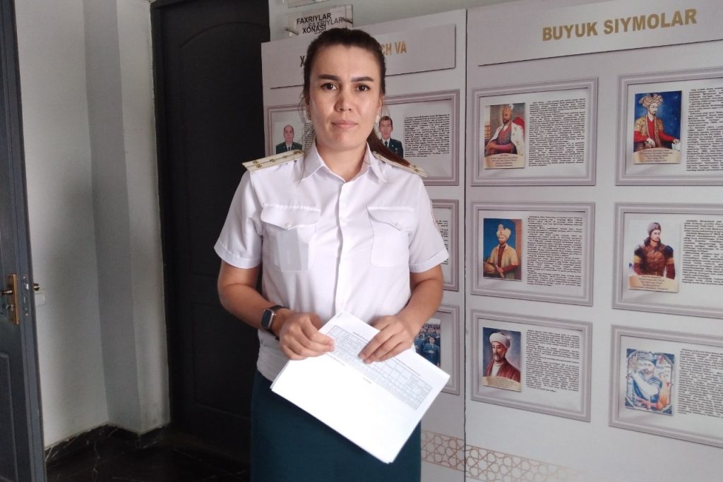 Бувайда тумани ИИБ ЖХХ ХҚМБ катта инспектори, капитан Д. Ҳасанова томонидан туман худудида яшовчи хотин-қизларнинг ҳуқуқий саводхонлигини ошириш бойича тарғибот тадбирлари олиб борилмоқда.