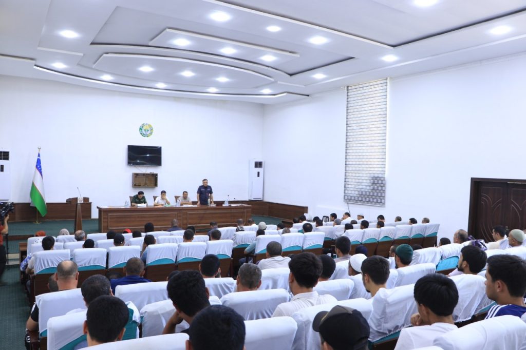 Бувайда туман ҳокимлиги мажлислар залида Бувайда тумани ИИБ ЖХХ Пробация бўлинмаси ҳисобида турган назорат остидаги шахслар билан қайта жиноят содир этилишини олдини олиш мақсадида очиқ мулоқот ўтказилди.