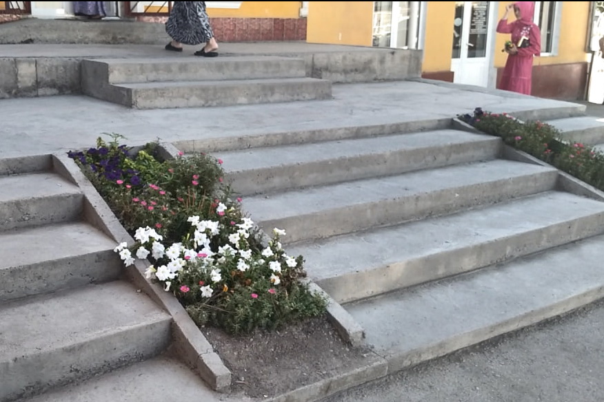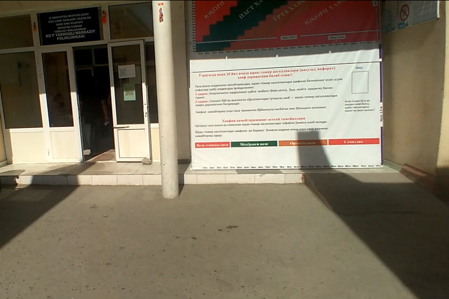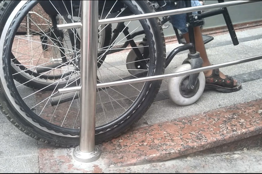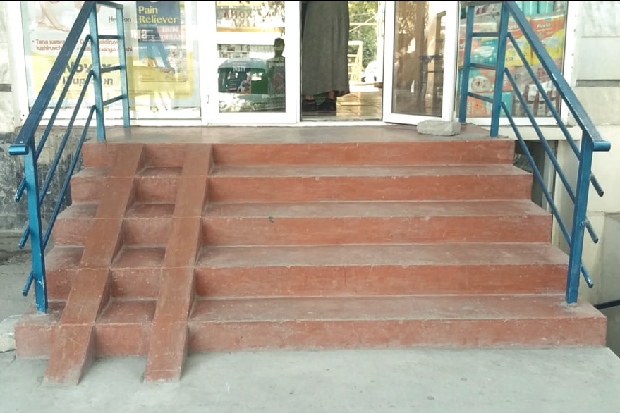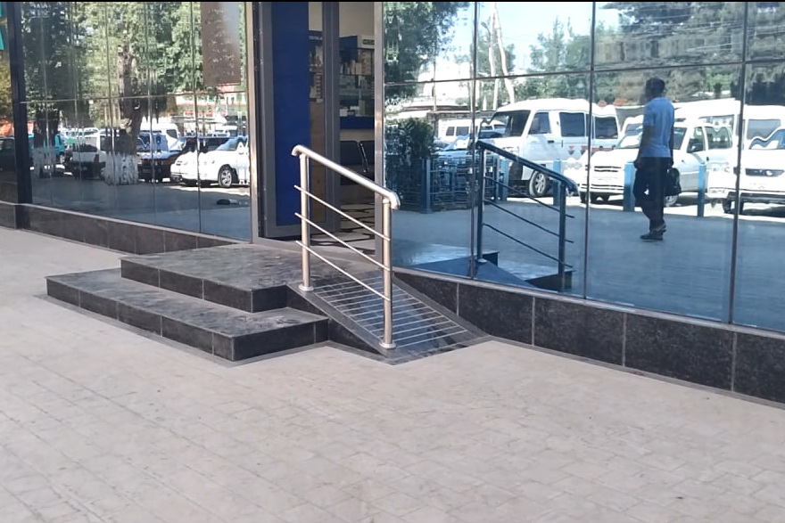 Мана шу масалалар юзасидан тумандаги айрим ташкилот ва муассасалар биноларидаги кириш-чиқиш йўлаклари ҳолатларини ўргандик. Ногиронлиги бор шахслар энг кўп мурожаат қиладиган муассаса – бу тиббиёт маскани. Афсуски, шу ернинг ўзидаёқ улар унутилган, марказий поликлиниканинг кириш эшигидаги пандус (ногиронлар учун махсус йўлак) ўртасига каттагина постер қўйиб қўйилганини кўрдик. Икки томонида тутқичи йўқ.
