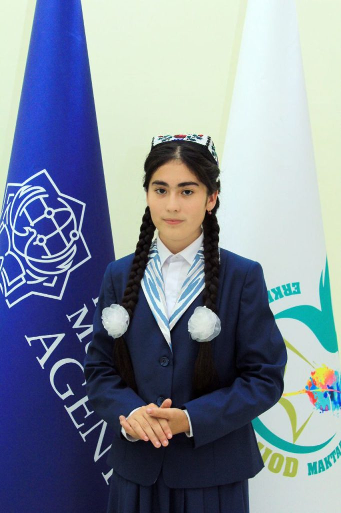 - Келажакда Юридика университетида ўқиш ҳамда ватанимиз учун керакли инсон бўлиш олий мақсадим ва бунинг учун астойдил билим олмоқдаман. Ўқиш билан бирга таржима ва шеърият йўналишида ижод қиламан. Идеалимдаги инсон – Саида Мирзиёева. Келажакда у каби бўлишни хоҳлайман. Ота-онам дуоси ва устозларим бераётган билим орзуларим рўёби учун пойдевор бўлади. Қолгани омад ва меҳнатга боғлиқ. Тенгдошларимга доимо изланишда бўлишларини, илм олишдан ҳеч қачон чекинмасликларини, юксак орзулар қилишларини тилайман.