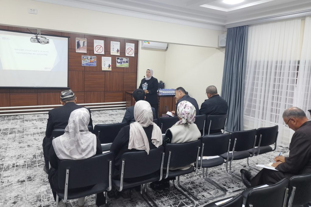 Бувайда ва Учкўприк туманидан танлаб олинган фермерлар, теримчилар, уч томонлама ҳамкорларнинг туман бўлимлари, туман фермерлар кенгашлари ва манфаатдор фуқаролик жамияти ташкилотлари вакиллари учун ташкил этилган семинар тренингда меҳнат соҳасидаги асосий принциплар ва ҳуқуқлар ҳақида сўз борди.