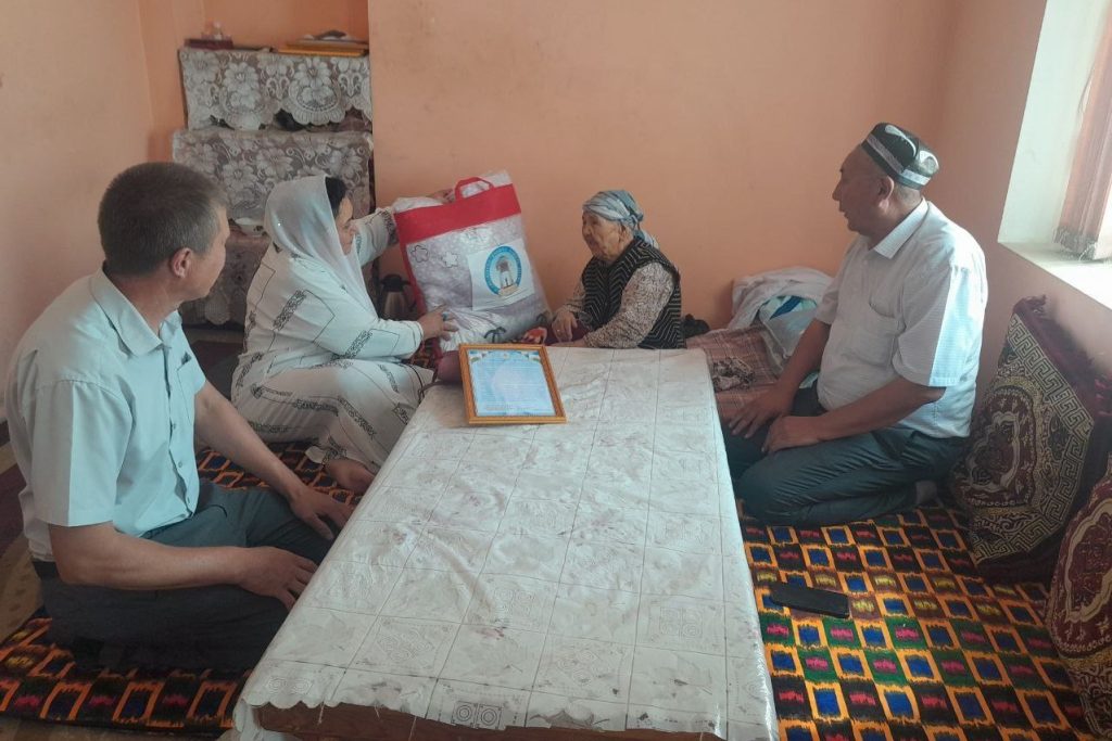Шонли байрамимиз муносабати билан туман хокими маслахатчиси, “Нуроний” жамғармаси туман бўлими раҳбари И. Эназаров, “Маҳалла” хайрия жамоат фонди Бувайда туман бўлинмаси ходими С. Муқимов, “Бувижонлар мактаби” раҳбари Х.Тошматовалар томонидан Қорақум МФЙда яшовчи 128 ёшли онахон Хувайдо Умарова, Озод МФЙда яшовчи 105 ёшли онахон Буханифа Бобоева, Янгиқўрғон МФЙда яшовчи Иккинчи жахон уруши қатнашчиси 98 ёшли отахон Кенжабой Эгамқулов ҳамда Шўр МФЙда яшовчи “Ўзбекистон Қахрамони” Патилахон Эргашеваларнинг хонадонига ташриф буюрилди ва табрикланди.