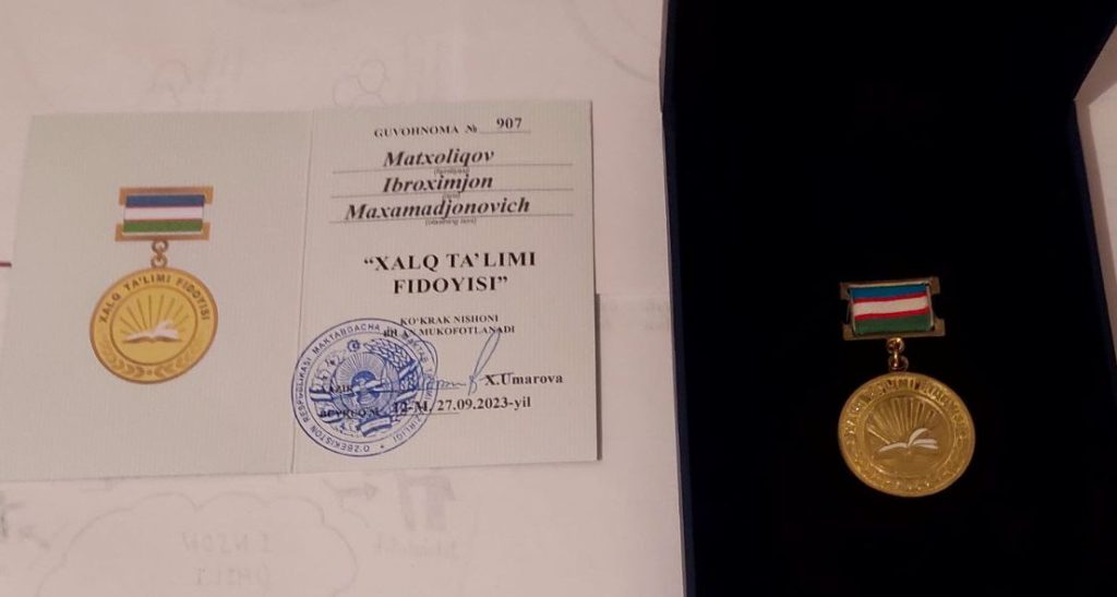 Матхолиқов “Халқ таълими фидойиси” кўкрак нишони билан тақдирланди.